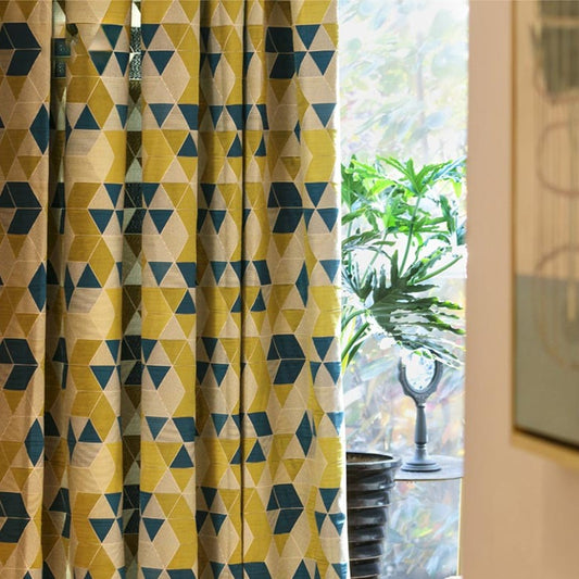 Custom Lemon Geometric Jacquard Curtains / Drapes | MIFU Decor