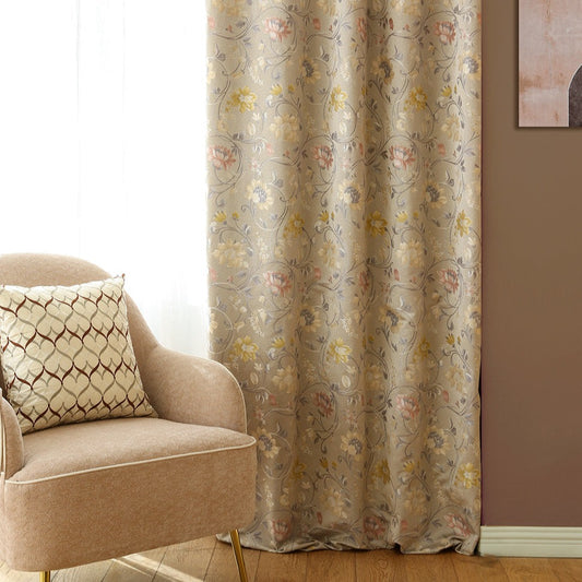 Custom Wreath Floral Jacquard Room Darkening Curtains / Drapes | MIFU Decor