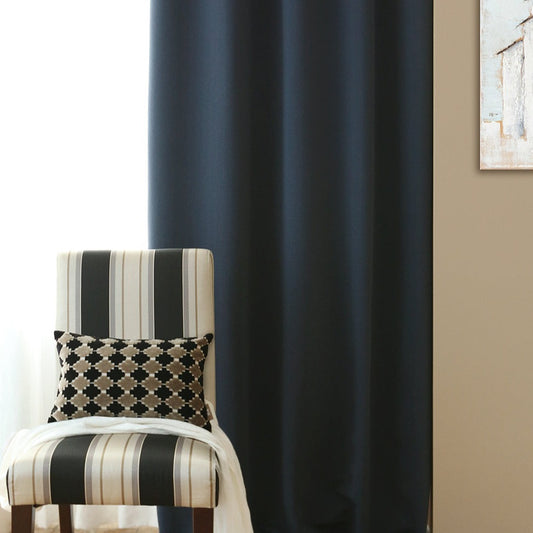 Custom Marine Navy Blue Solid Yarn-dyed Textured Room Darkening Curtains / Drapes | MIFU Decor
