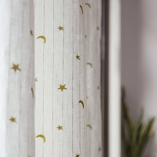 Custom Little Prince Moon & Star Embroidered Cotton-Linen Curtains / Drapes | MIFU Decor