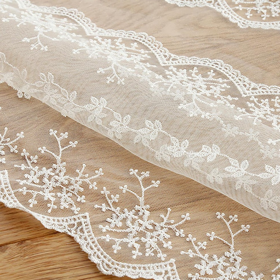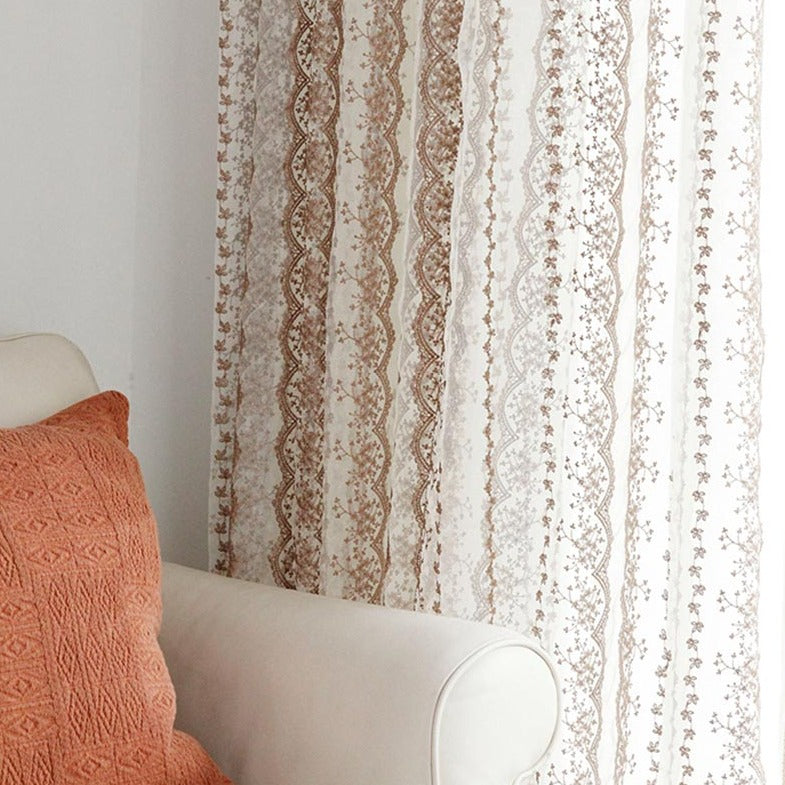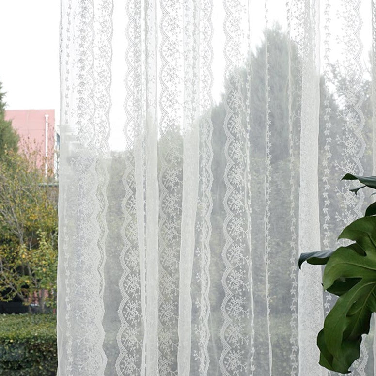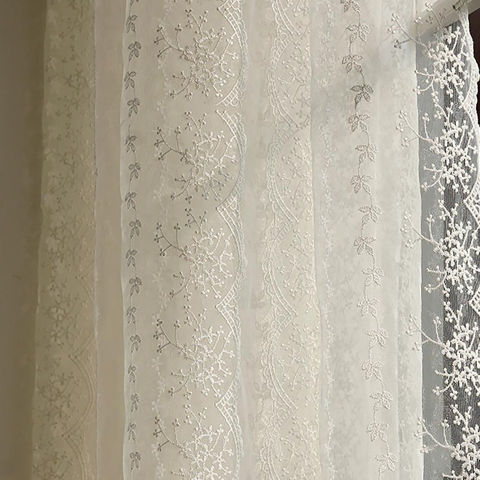 Custom Elisabeth Cotton Embroidered Floral Lace Sheer Curtains / Drapes | MIFU Decor